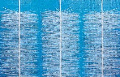 彈性立體填料篩選了聚烯烴類和聚酰胺中的幾種耐腐、耐溫、耐老化的優(yōu)質品種,混合以親水、吸附、抗熱氧等助劑,采用特殊的拉絲,絲條制毛工藝,將絲條穿插固著在耐腐、高強度的中心繩上,由于選材和工藝配方精良,剛柔適度,使絲條呈立體均勻排列輻射狀態(tài),制成了懸掛式立體彈性填料的單體,填料在有效區(qū)域內能立體全方位均勻舒展?jié)M布,使氣、水、生物膜得到充分混滲接觸交換,生物膜不僅能均勻的著床在每一根絲條上,保持良好的活性和空隙可變性,而且能在運行過程中獲得愈來愈大的比表面積,又能進行良好的新陳代謝,這一特征與現象是國內目前其他填料不可比擬的。